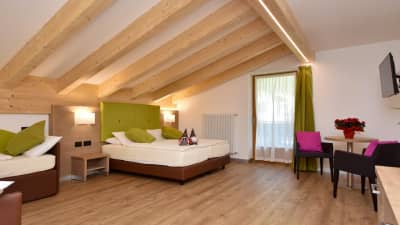 Hotel Jan Maria is a welcoming 3-star superior in a quiet, sunny corner of Canazei, run by the Fosco family and known for its warm, personal service. It feels more like a mountain home than a large resort hotel, with lots of wood, soft colours and a relaxed, unhurried atmosphere. Rooms are comfortable and well kept, many with balconies looking towards the Dolomites, so you can start and end each day with those big mountain views.